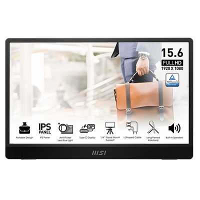 15.6′ FHD IPS Panel – Enhance your viewing experience. Portable Design helps bring it anywhere you want without strain or pressure with a protection bag. Tripod Socket design makes it more flexible to stand by you. An Extended Stand encourages a more upright screen position, ensuring better ergonomic comfort. Ultra slim profile with a 1.08 cm (0.4′) only thickness, and extremely light weighing in only at 0.75 kg (1.65 lbs). MSI EyesErgo technology with Anti-flicker, Less Blue Light, and Anti-glare panel to protect your eyes. Type-C/mini HDMI Multi Input – allowing you to connect to any device effortlessly, such as a smartphone, camera, laptop, or PC. Ergonomically designed fold-out kickstand with a 0° ~ 180° design enables you to orient the screen in both portrait and landscape modes. L-shaped Cables prevent cable bending, ensuring convenience and uninterrupted use. Built-in Speakers – Allow you a great audio experience while on the move.