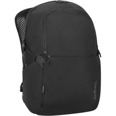 15-16 inch Zero Waste EcoSmart Backpack, Black. The Targus 15.6 inch EcoSmart Zero Waste Backpack delivers practical laptop protection while helping to protect the environment. This patent-pending pack utilizes recycled materials in all elements of the product, even its packaging, and uses it to create the bags standup silhouette. Thoughtfully designed to help reduce waste, the bags external packaging is flattened into a rectangle and then slipped into a pocket along the back panel, and reused as structural support and added laptop protection. With GRS-certified recycled materials made from 20 plastic bottles, this bag is good from the inside out.. Features Dedicated compartment fits laptops up to 16; Made from the recycled plastic of 20 water bottles; Exterior packaging also made from recycled plastic; Packaging pocket sits behind the laptop cradle providing structure and laptop hardware protection; Ventilated shoulder straps; 2 front stash pockets; 2 water bottle side pockets; Hard looped zipper pulls for easy use; Integrated yoke handle 21 L capacity; Specifications Color: Black; Material: Plastic; Number of Compartments: 3; Capacity: 5.55 gal; Size: 15-16″; Weight: 1.08 lbs; .